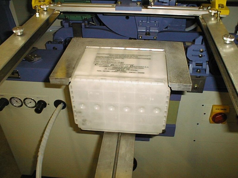 Rekeszek szitázása – speciális szitával, mert a felirat süllyesztett felületbe kerül
